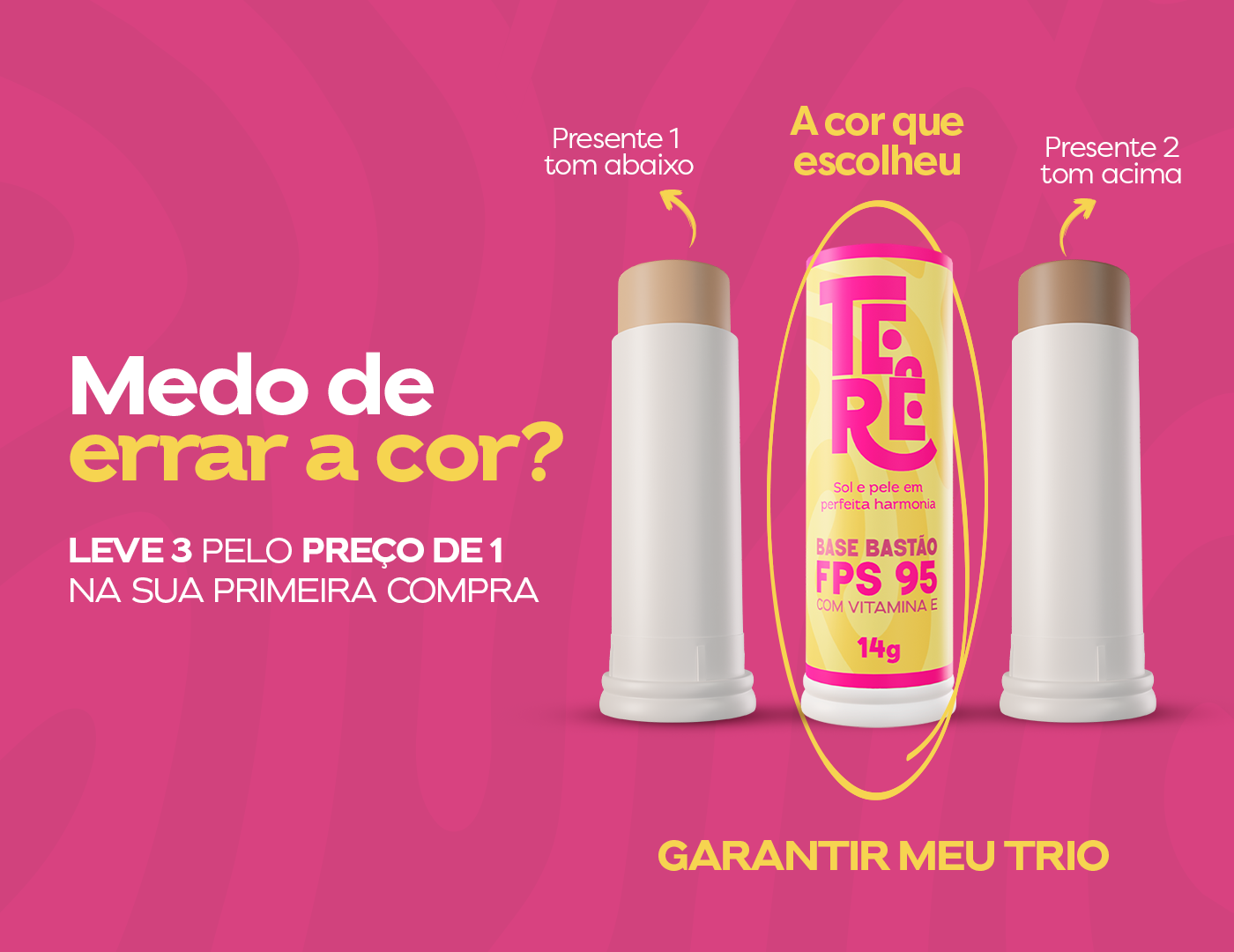 *Promoção não cumulativa. Venda restrita a 1(um) trio por consumidor. Cada Trio contém 3 tons complementares da paleta Terê.PAGUE COM: