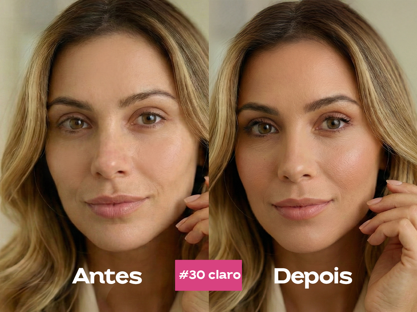 #30 Bege Dourado → pra pele clara que bronzeia fácil (subtom quente/amarelado)